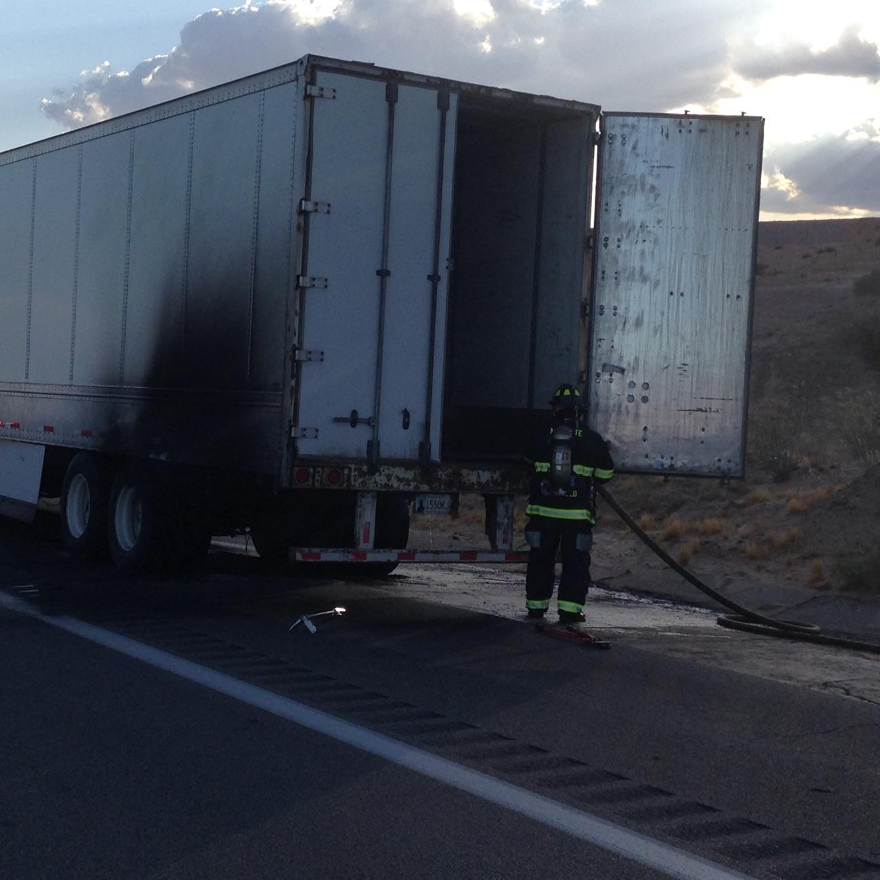 Mesquite Fire Rescue was alerted Tuesday evening of a Semi Truck on fire on Interstate 15 at mile marker 118. The driver was alerted by another motorist that his truck was on fire and he immediately pulled over.