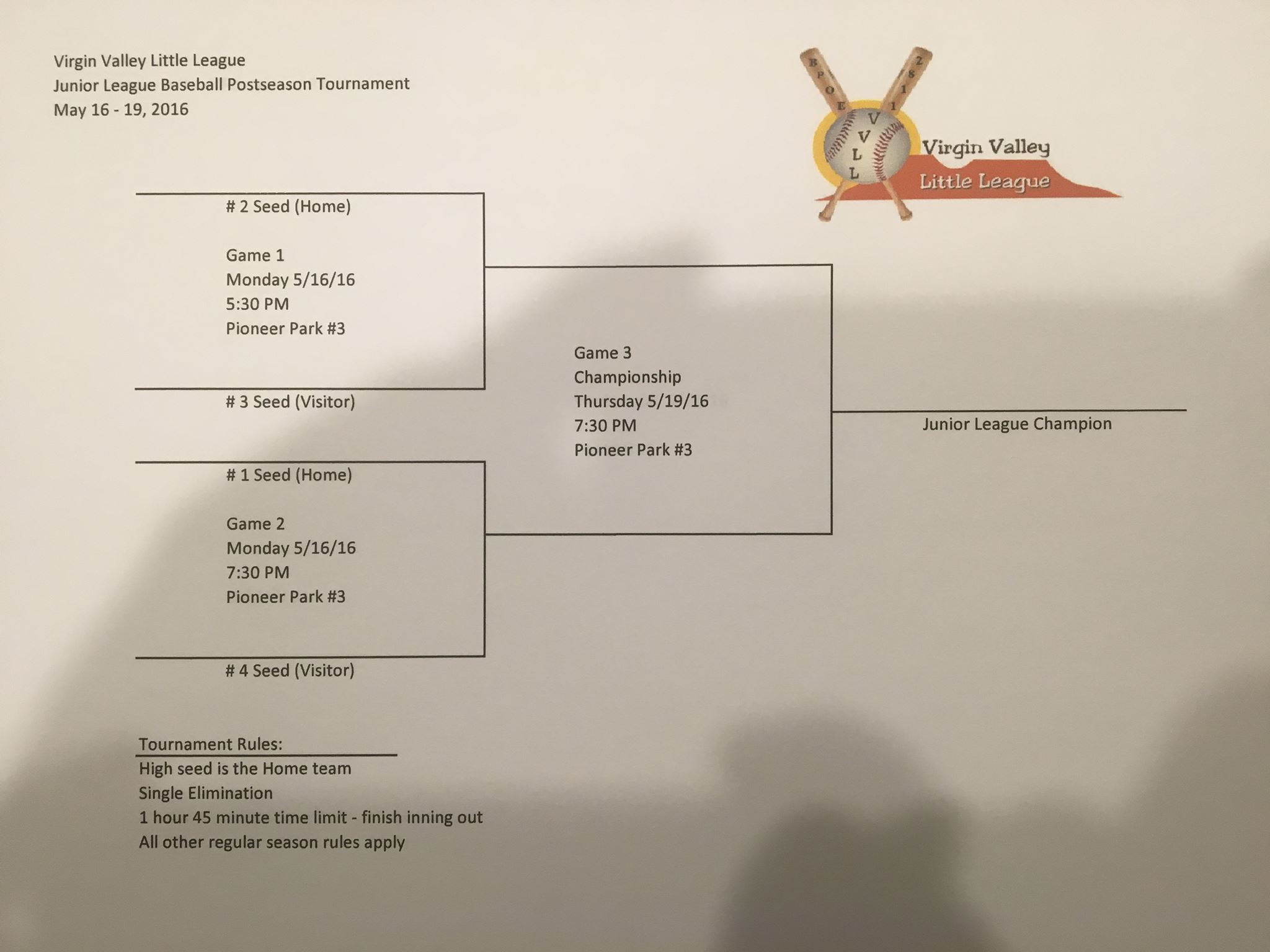 May 5, 2016 Scores:Juniors Baseball: