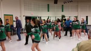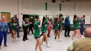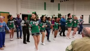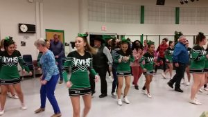 The VVHS Cheerleaders grabbed audience members to join them in a fun line dance. Many tried to keep up with the fast-paced dance and as they danced more kept joining in on the fun.